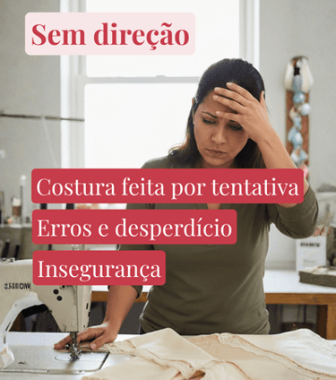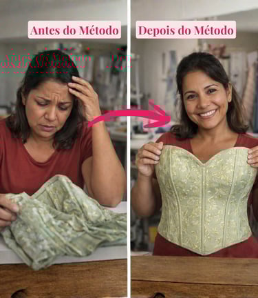 🚨 Medo de errar o corset, desperdiçar tecido e perder horas tentando acertar sozinha, enquanto a peça nunca sai como deveria.